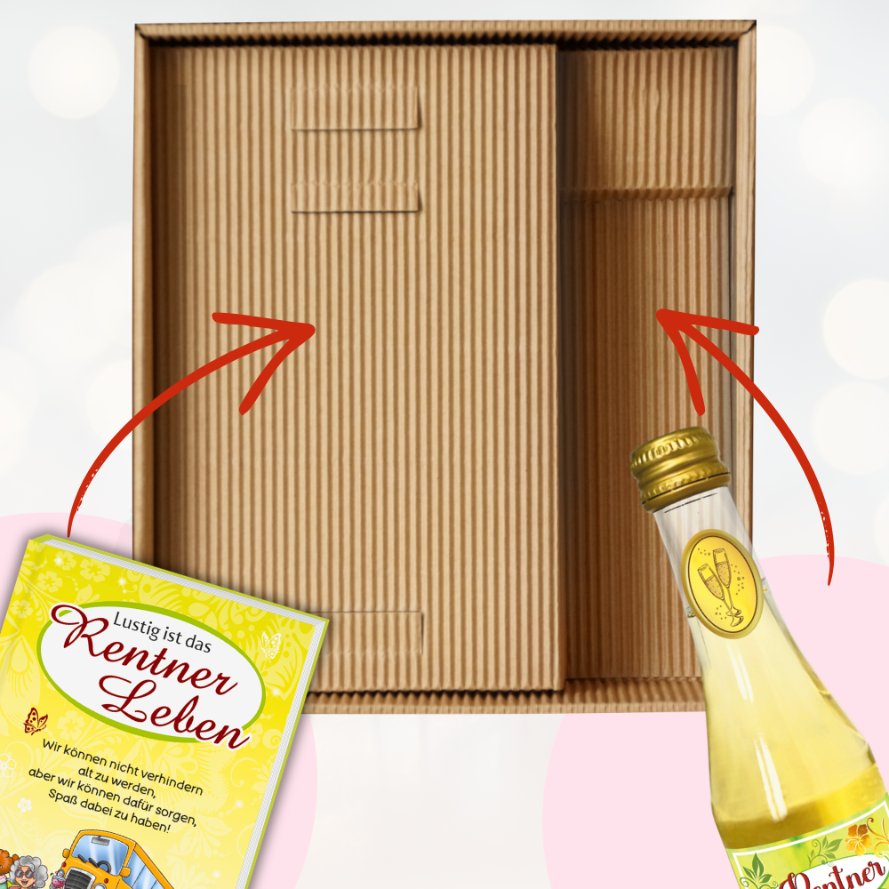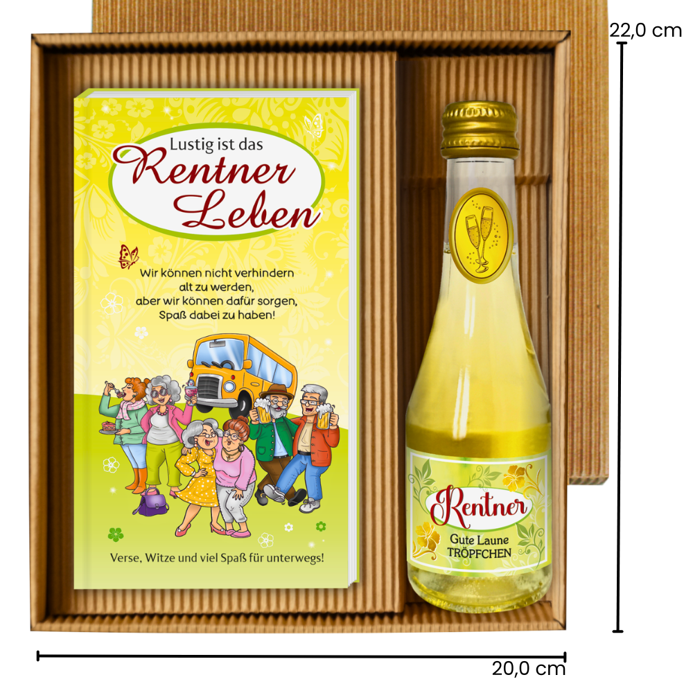 Die „Lustig ist das Rentner Leben“ Geschenkbox/ Geschenkset ist das perfekte Präsent für alle, die den Ruhestand mit Humor genießen möchten. Dieses liebevoll zusammengestellte Set kombiniert ein unterhaltsames Buch mit Piccolo Beeren Perlwein und sorgt so für Freude, Entspannung und viele lustige Momente.