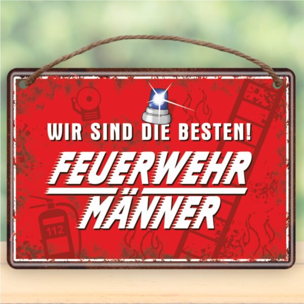 Metallschild Blechschild mit Kordel – Ein Feuerwehrmann lässt nichts anbrennen – als Geschenk rostfrei Türschild Schild mit lustigem Spruch im Vintage Retro Look. Ursprünglich waren Blechschilder einst als Werbemittel in Cafes oder Bars gedacht, um Kunden auf ein besonderes Produkt aufmerksam zu machen. Doch heute schmücken die alten Reklameschilder Wohnräume, Küchen, Werkstätten, Hobbyräume, Gartenlauben und Garagen. Die begehrten Wandschilder im Vintage Syle verbinden die gute alte Zeit der Rockabilly der 60er und 70er, mit Ihrer ganz persönlichen Note und die Gegenwart mit vielen unterschiedlichen Formen und Farben. So machen Sie jeden Raum wohnlicher und interessanter.