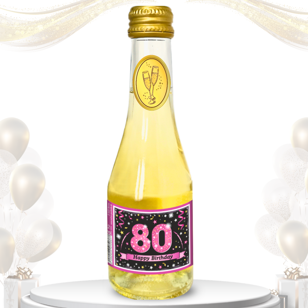 Piccolo Beeren Perlwein zum 80. Geburtstag „80 Happy Birthday“ – PINK Schwarz Secco Sekt 0,2L | 8% vol. Alkohol | Geschenkidee mit Stil | Pfeif auf’s Alter