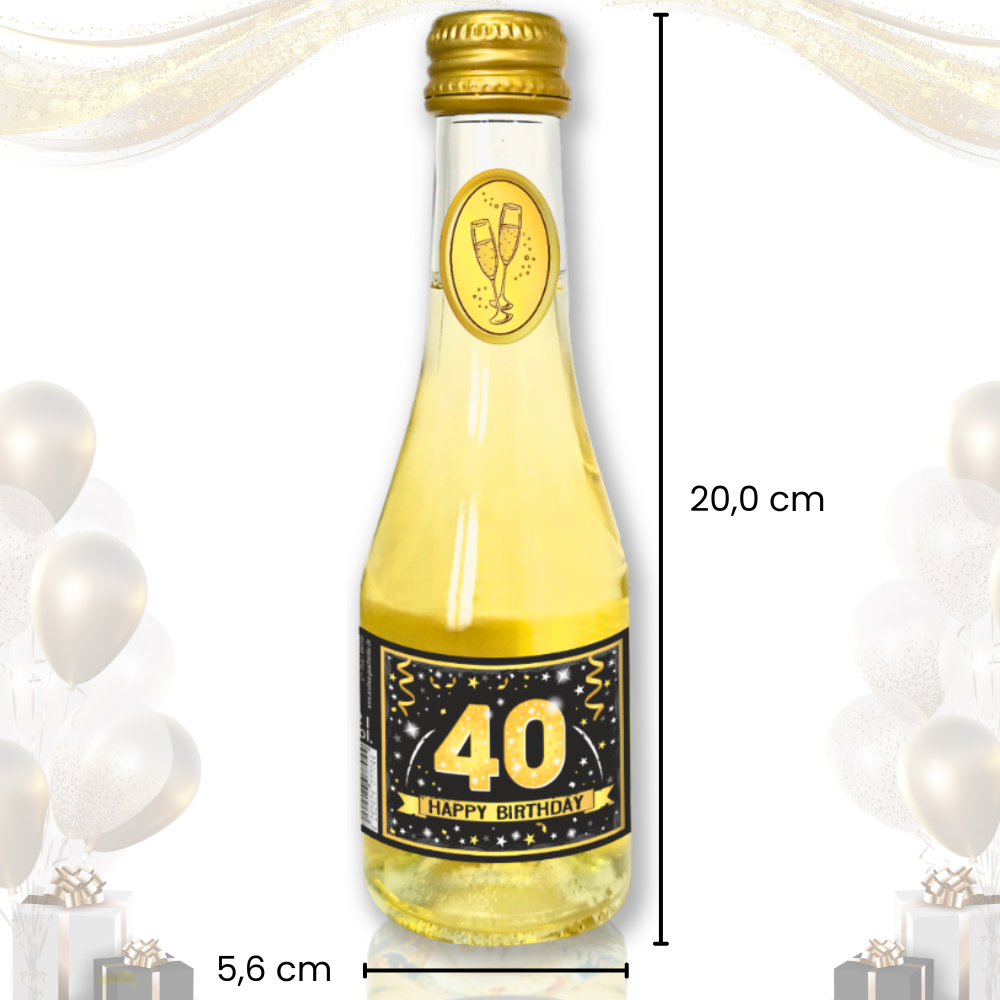 Das auffällige Hochglanzetikett mit „40. Happy Birthday – Alles Gute“ macht die Flasche zu einem sofort einsatzbereiten Geschenk. Kein zusätzliches Verpacken nötig – auspacken, anstoßen, genießen. Der humorvolle Zusatz „Pfeif auf’s Alter“ unterstreicht die lockere, positive Botschaft und spricht Geburtstagskinder jeden Alters an. Dank der kompakten Größe eignet sich der Piccolo hervorragend als Geburtstagsgeschenk für Freunde, Familie, Kollegen oder als kleine Aufmerksamkeit zwischendurch. Auch ideal für Geschenkboxen, Tischdekorationen, Party-Giveaways oder als persönlicher Akzent bei Feiern.