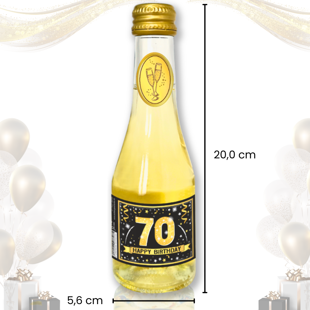 Das auffällige Hochglanzetikett mit „70. Happy Birthday – Alles Gute“ macht die Flasche zu einem sofort einsatzbereiten Geschenk. Kein zusätzliches Verpacken nötig – auspacken, anstoßen, genießen. Der humorvolle Zusatz „Pfeif auf’s Alter“ unterstreicht die lockere, positive Botschaft und spricht Geburtstagskinder jeden Alters an. Dank der kompakten Größe eignet sich der Piccolo hervorragend als Geburtstagsgeschenk für Freunde, Familie, Kollegen oder als kleine Aufmerksamkeit zwischendurch. Auch ideal für Geschenkboxen, Tischdekorationen, Party-Giveaways oder als persönlicher Akzent bei Feiern.