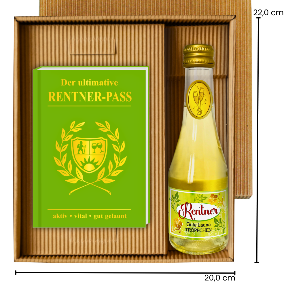 Dieses Set ist weit mehr als nur ein einfaches Präsent – es ist eine Anerkennung der Lebensleistung und ein herzliches Willkommen im wohlverdienten „Club der Rentner“. Ob für den geliebten Opa, die herzliche Oma oder den geschätzten Kollegen: Dieses Set verbindet hochwertige Qualität mit charmantem Witz und prickelndem Genuss.