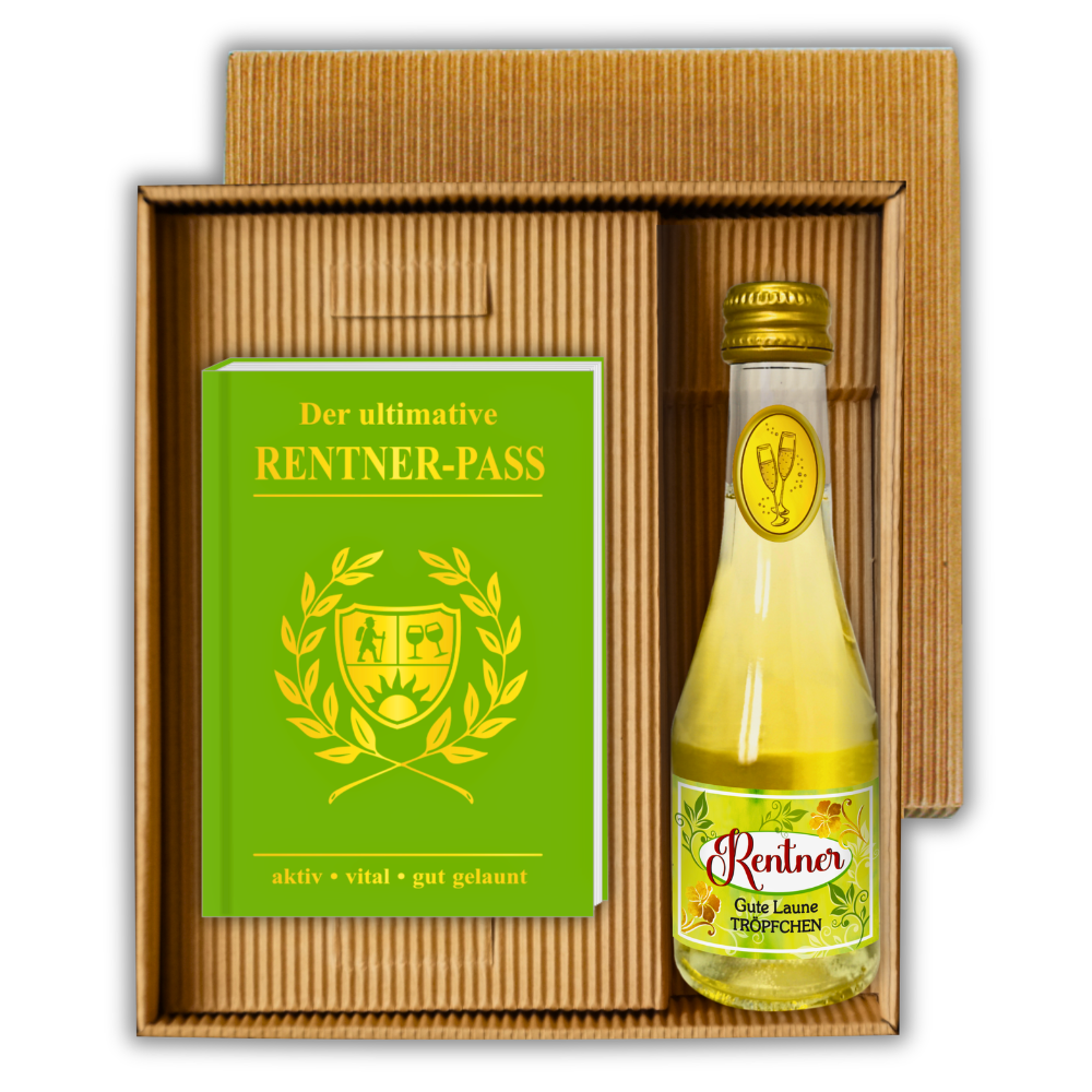 Rentner Pass Geschenkset mit Piccolo Beeren Perlwein – Gute Laune