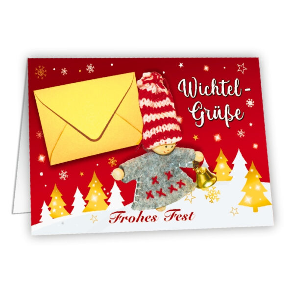Weihnachtskarte Geldgeschenk – Wichtel Grüße rot