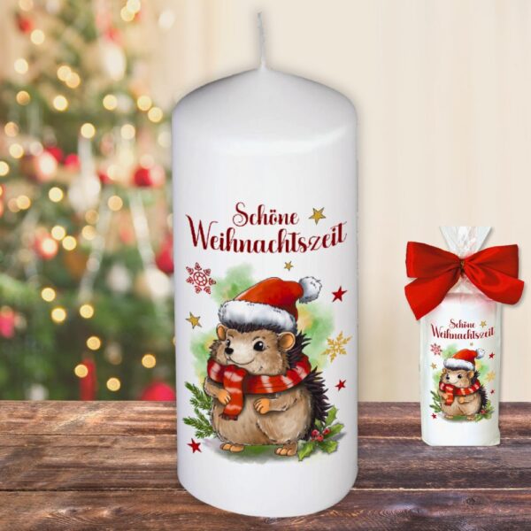 Weihnachtskerze Stumpenkerze – Schöne Weihnachtszeit, Igel