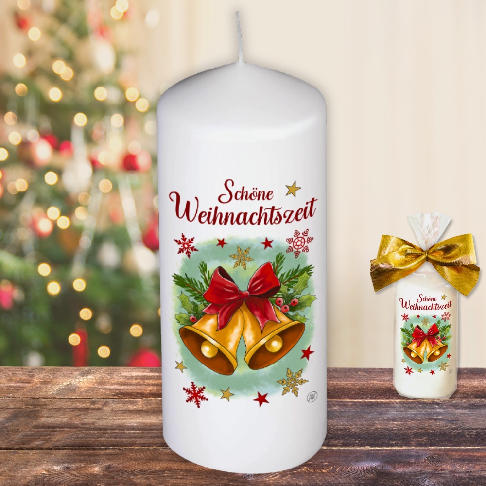 Weihnachtskerze Stumpenkerze – Schöne Weihnachtszeit, Glocken